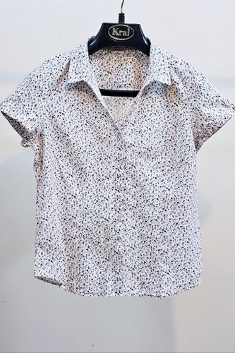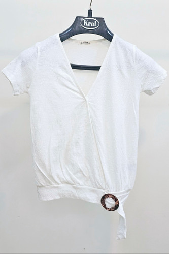 بلوز زنانه سفید یقه هفت آستین کوتاه سگگدار کمی کشسانی شیک وبادوام