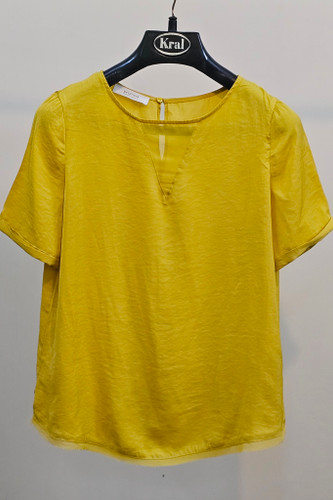 شومیززنانه جنس سیلک رنگ خردلی خوش‌رنگ آستین کوتاه سبک و کاربردی