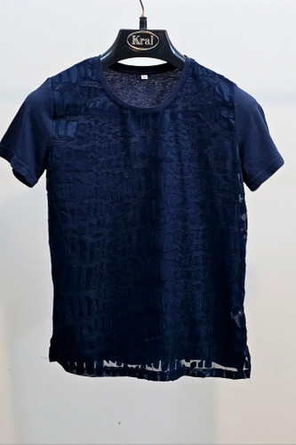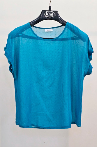 بلوز زنانه سوپرنخ لطیف ونرم شاین دار آستین کوتاه زمینه سورمه ای