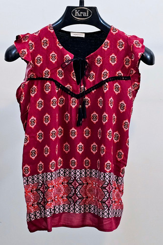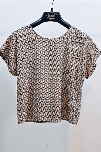 بلوز زنانه سوزمه ایی آستین کوتاه و یقه گرد استوک