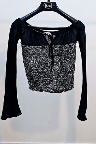 تاپ زنانه کر حریر زمینه مشکی یقه فرنچ حلقه آستین