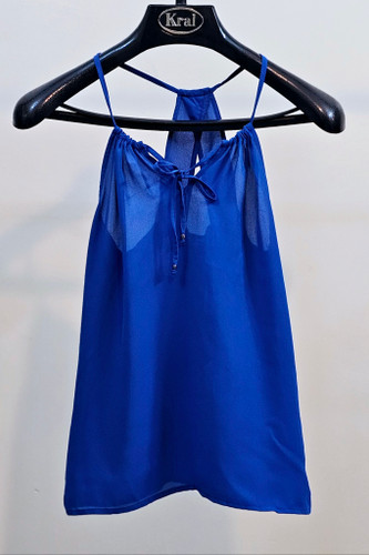 تاپ حریر مشکی با گلهای ابی رنگ