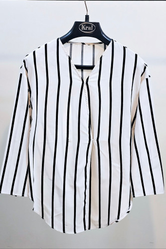شومیززنانه مجلسی جنس کرپ اعلا مشکی راه راه آستین بلند مچ سگگ دار