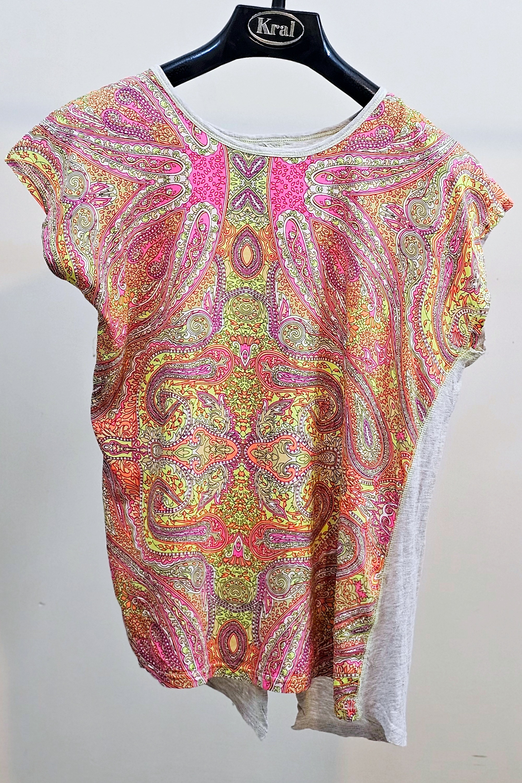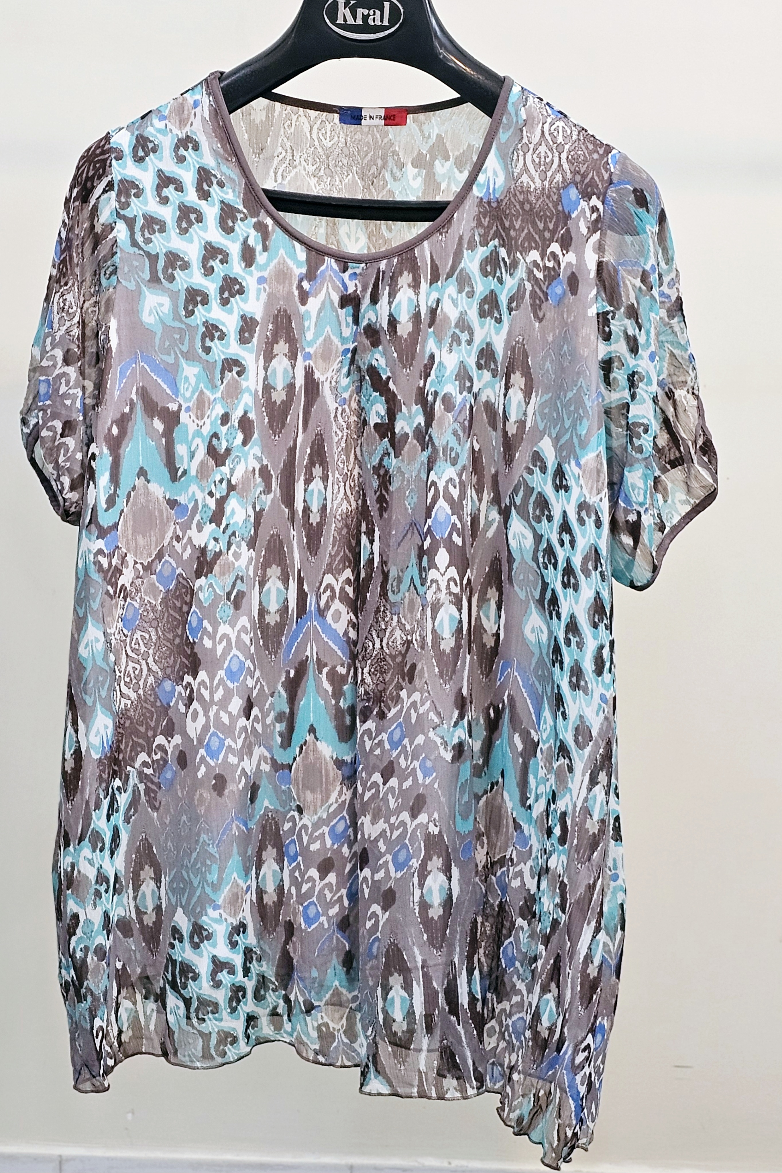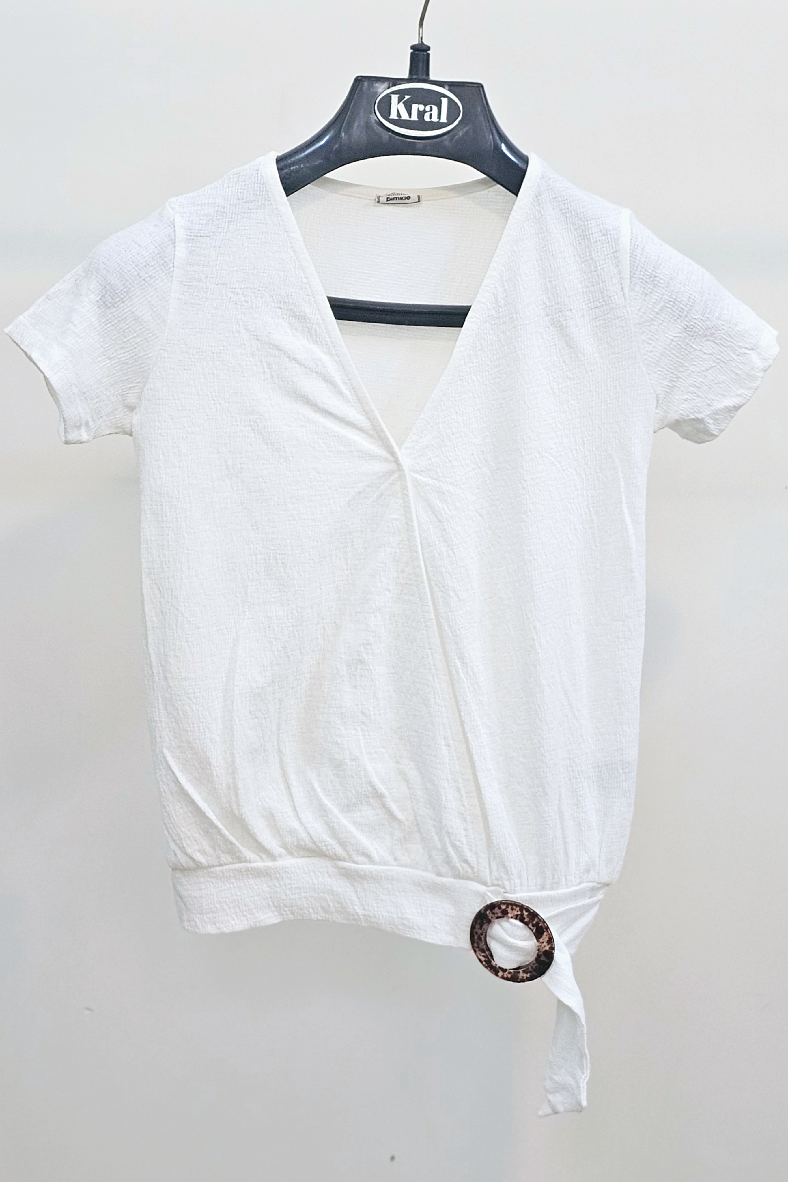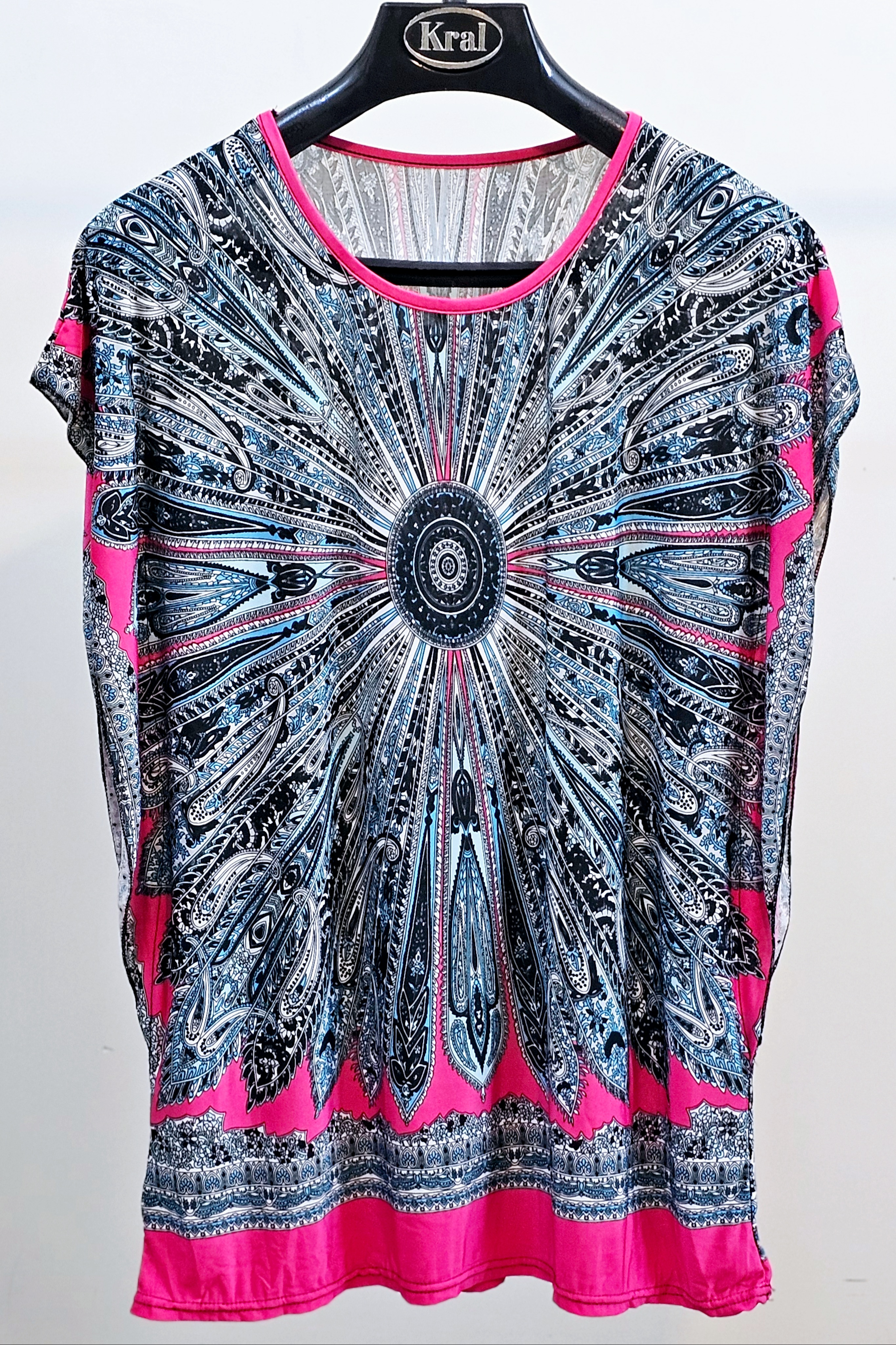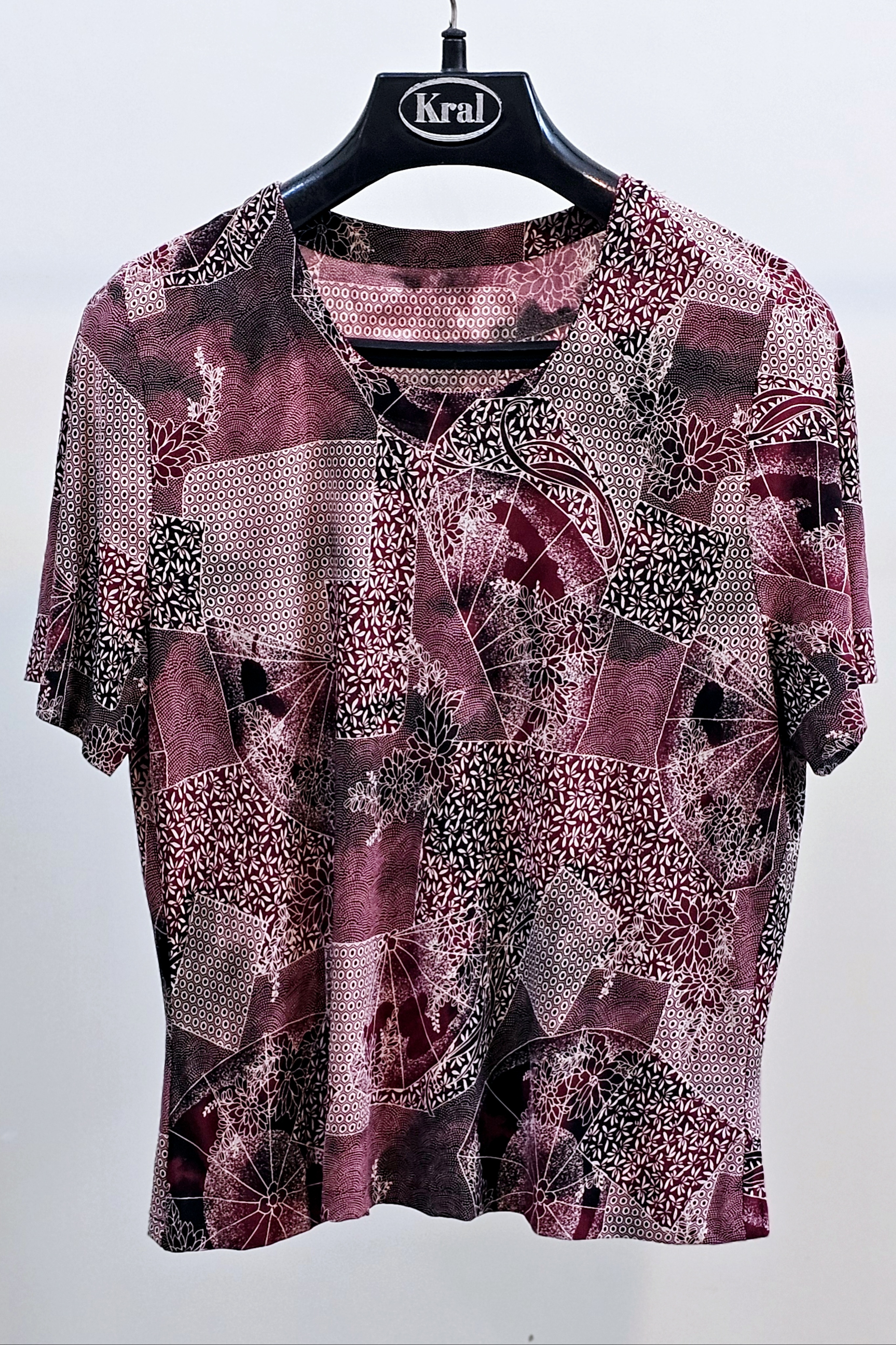 بلوز زنانه سوزمه ایی آستین کوتاه و یقه گرد استوک