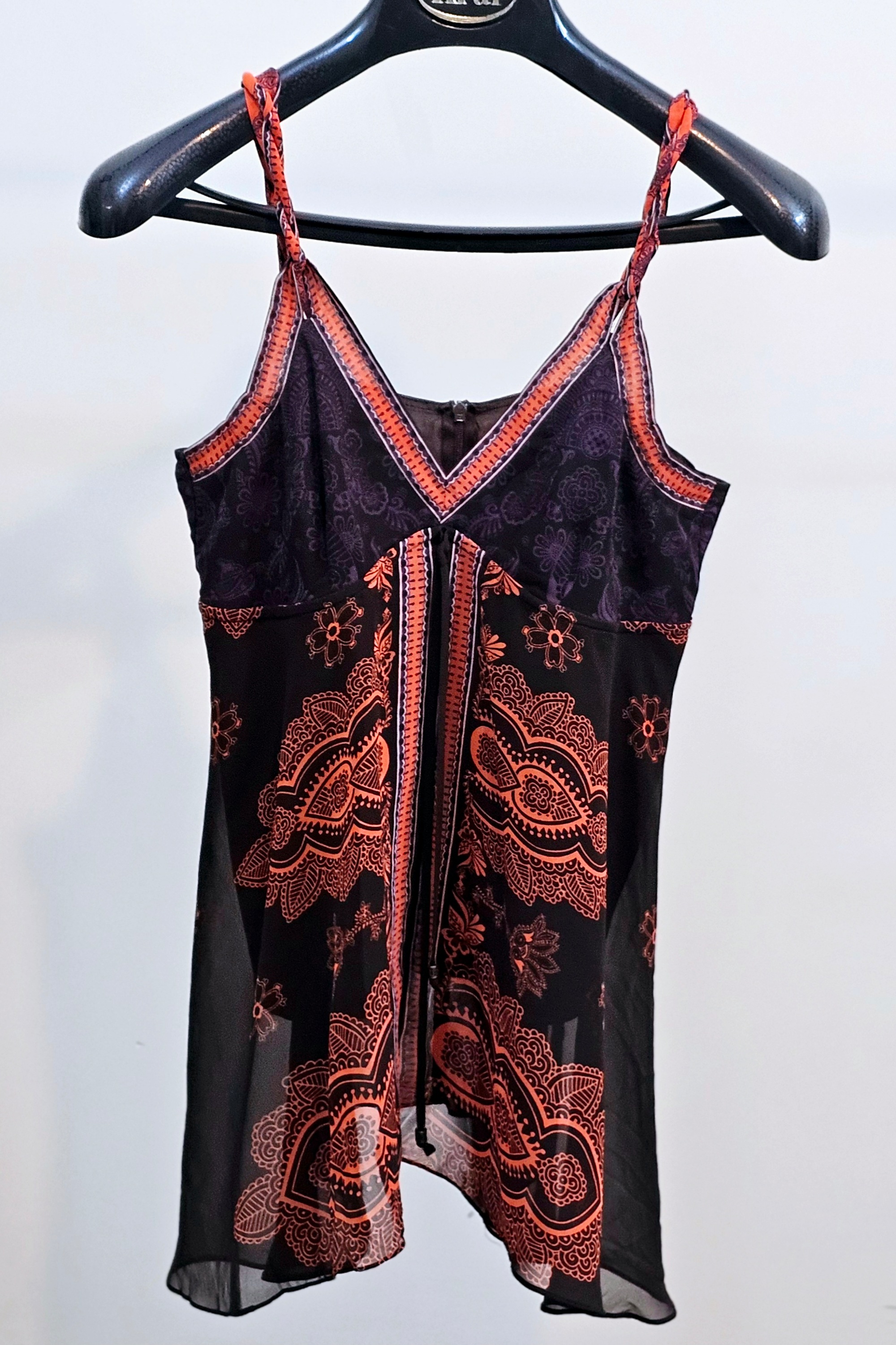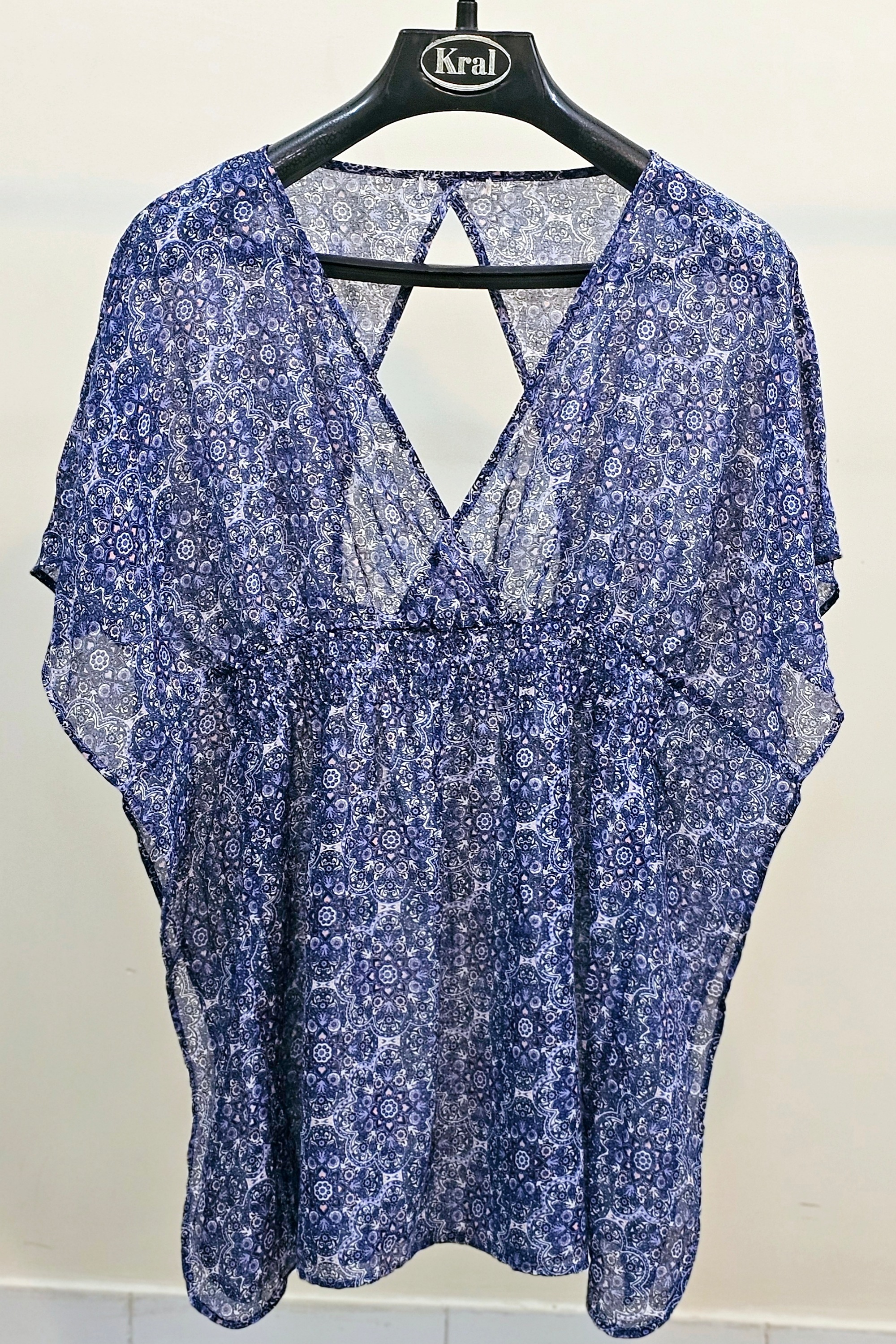 تاپ حریر مشکی با گلهای ابی رنگ