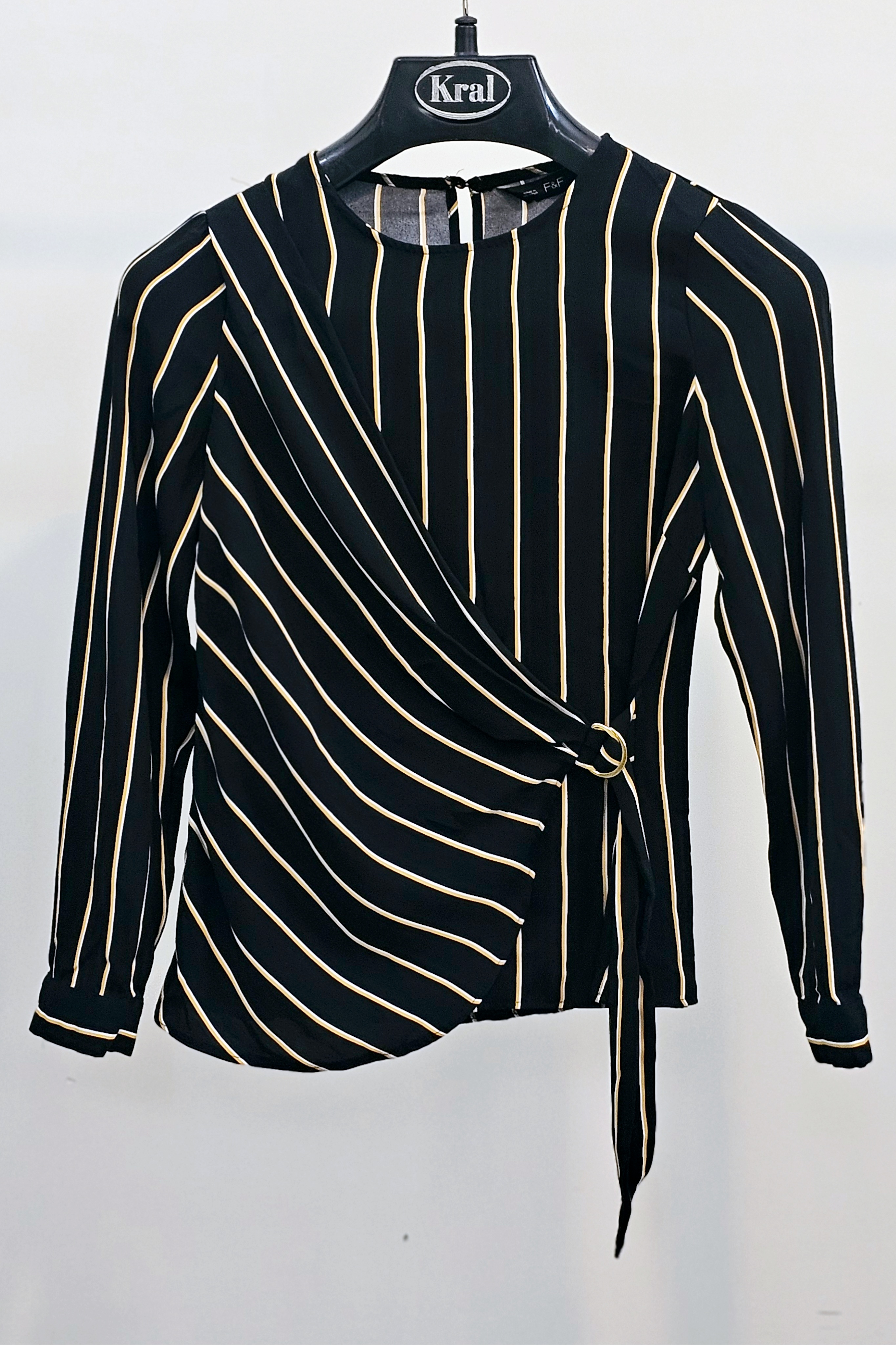 شومیززنانه مجلسی جنس کرپ اعلا مشکی راه راه آستین بلند مچ سگگ دار