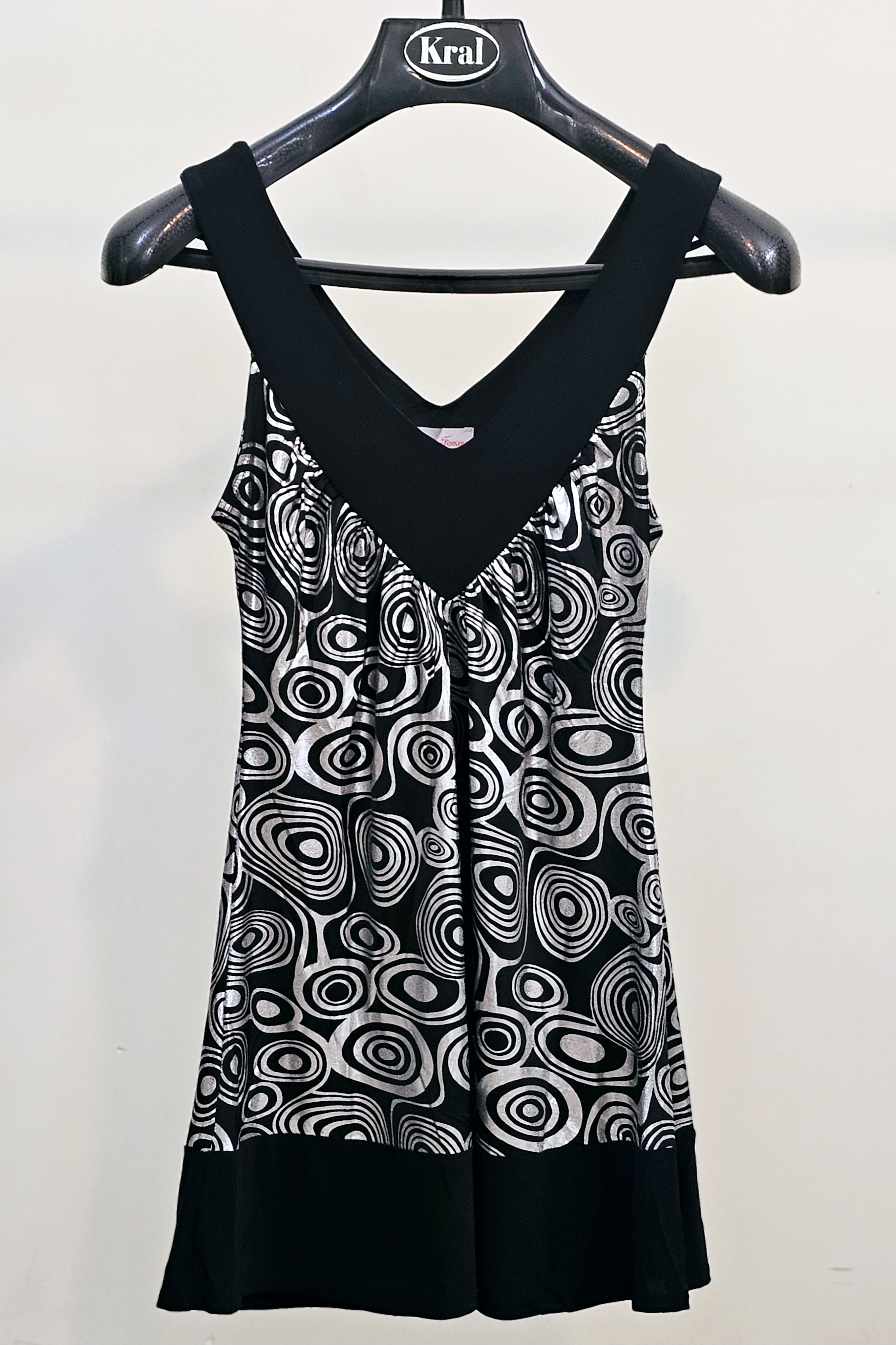 تونیک زنانه جنس ریون مشکی و نقرهای شیک وراحت فری‌سایز فوق‌العاده کاربردی استوک