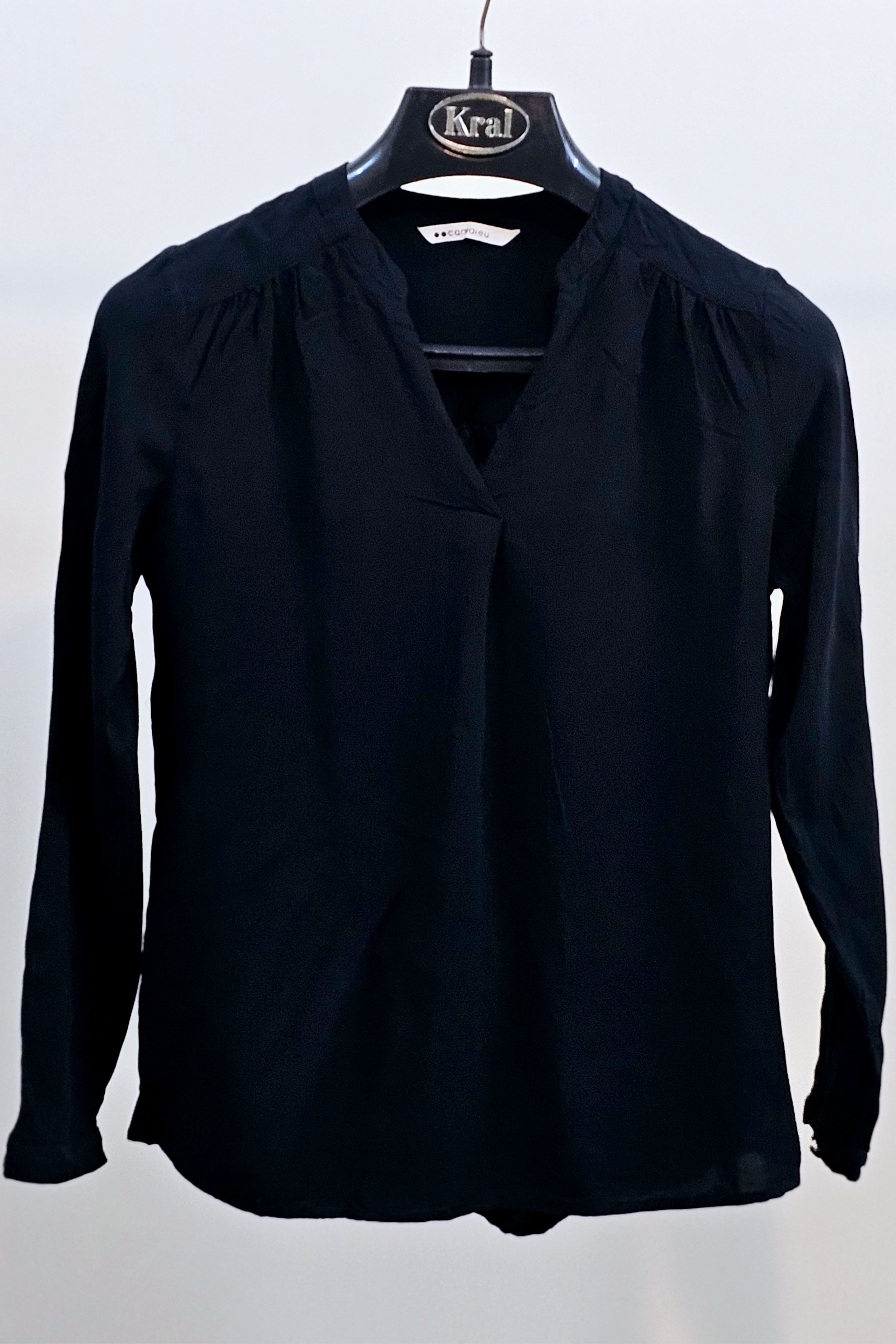 بلوز زنانه کرپ یقه مدل دار آستین حلقه‌ای استوک یک تومن خرید کن ارسالت رو رایگان کن