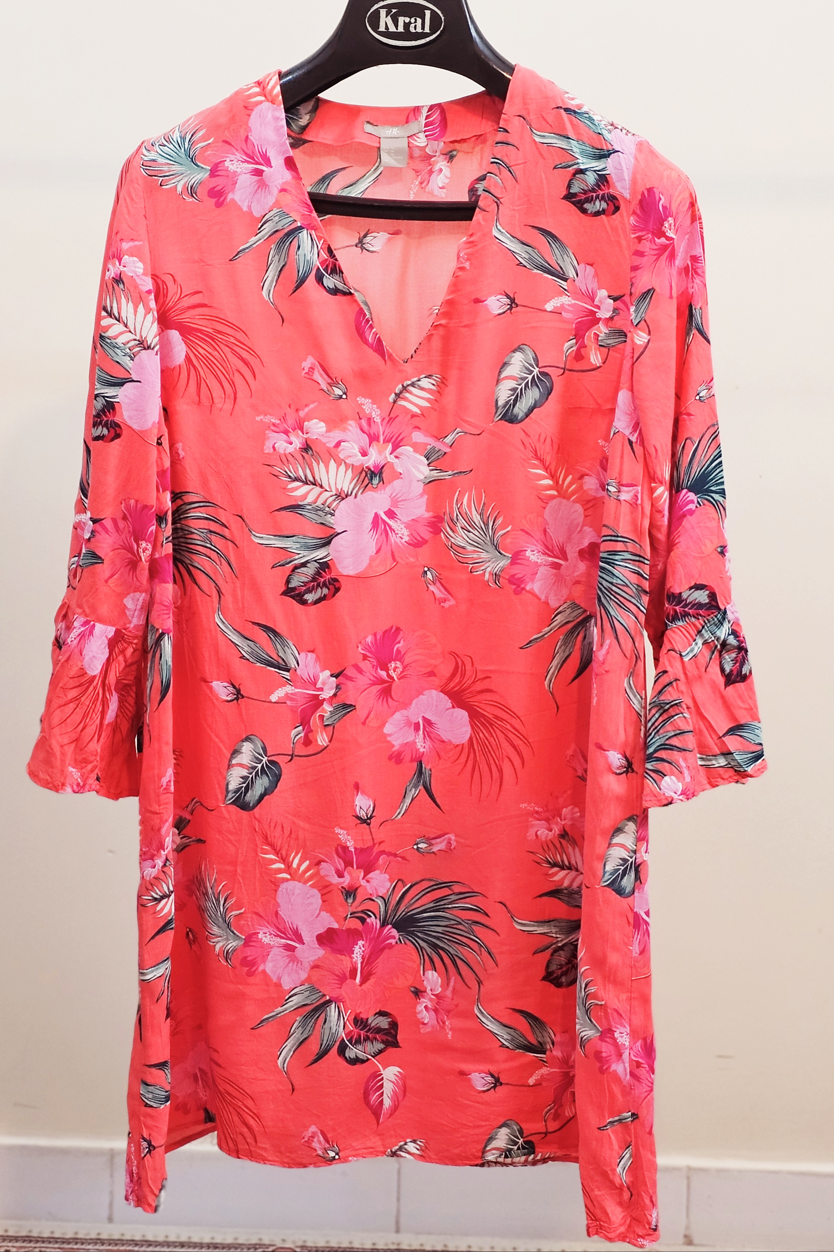 پیراهن زنانه نخی گلدار فوق‌العاده شیک و راحت دم آستین کلوش استوک یک تومن خرید کن ارسالت رو رایگان کن