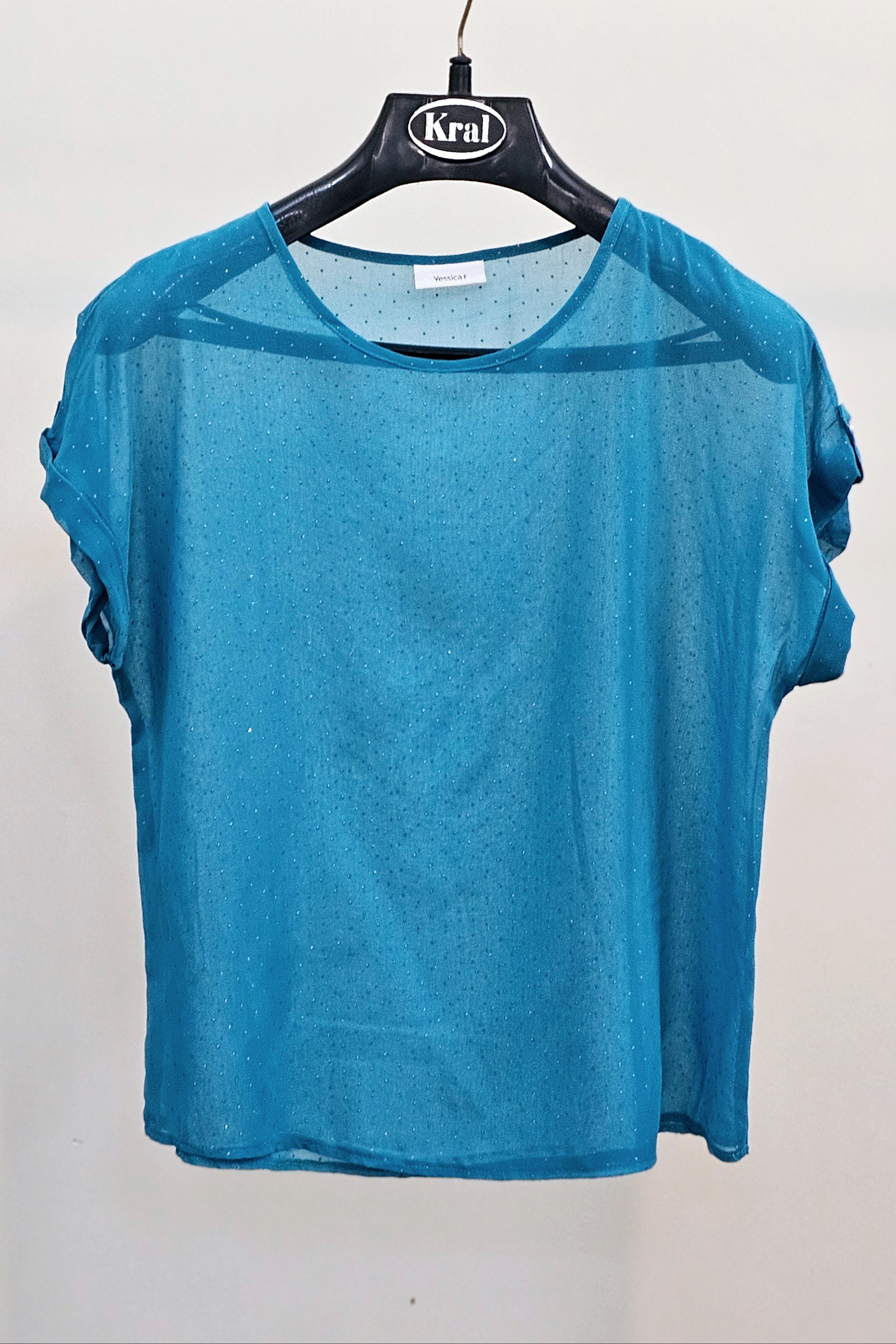 بلوز زنانه سوپرنخ لطیف ونرم شاین دار آستین کوتاه زمینه سورمه ای