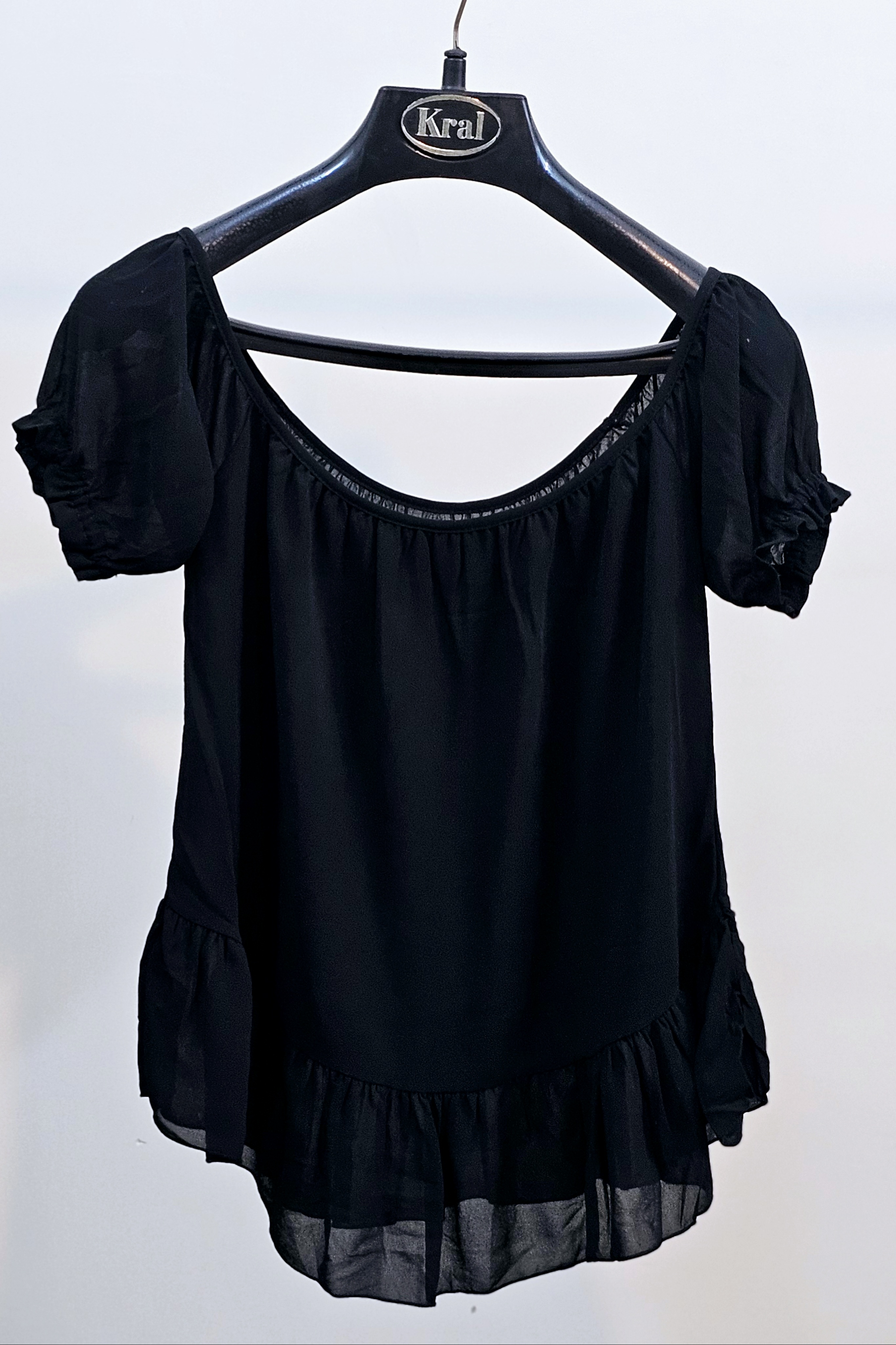 شومیززنانه مشکی کرپ کریشه یقه هفت آستین کوتاه سرشانه باز فوق‌العاده زیبا تومن خرید کن ارسالت رو رایگان کن