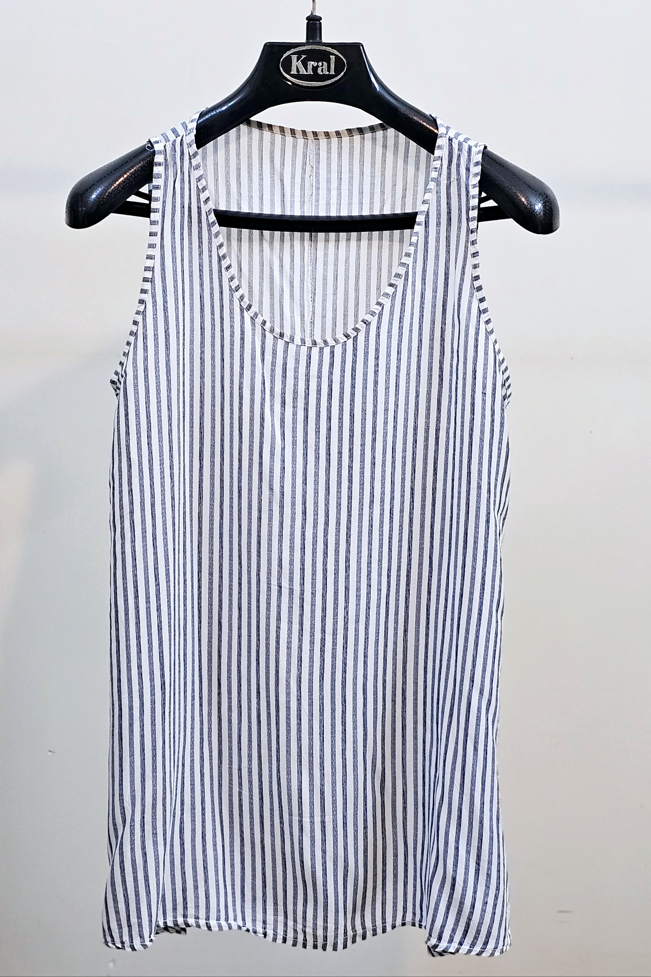 تاپ زنانه سایز بزرگ نخی سفید راه راه سوزمه ای پایین کلوش استوک