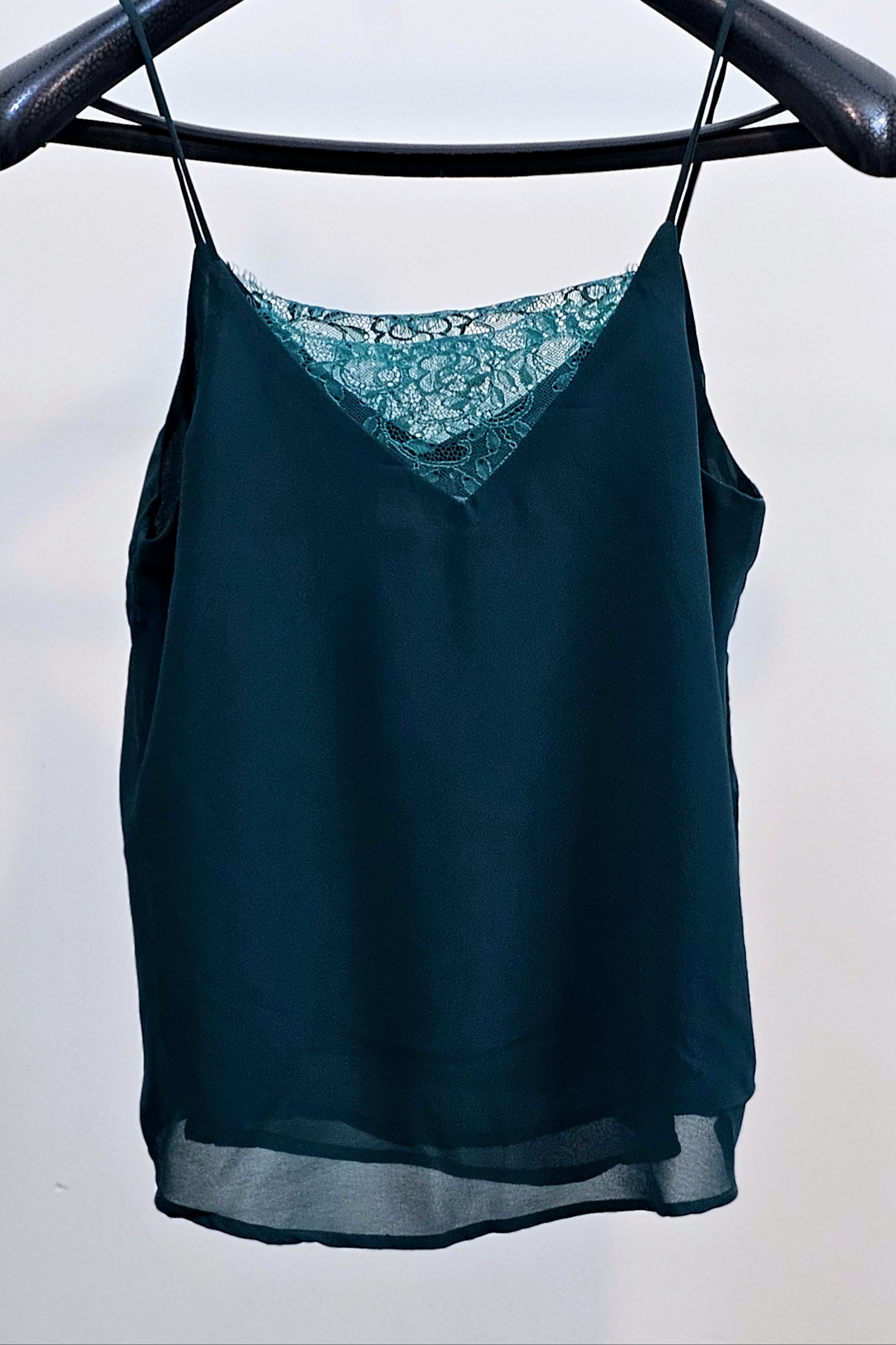 تاپ زنانه کرپ حریر آستر دار گیپوردوزی سبز یشمی استوک